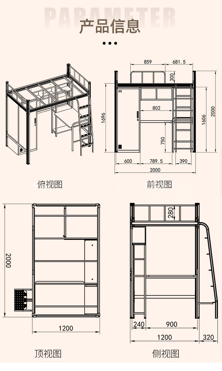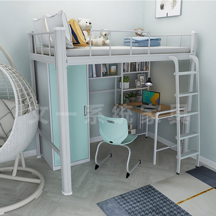 爬梯公寓床配衣柜書桌書架034